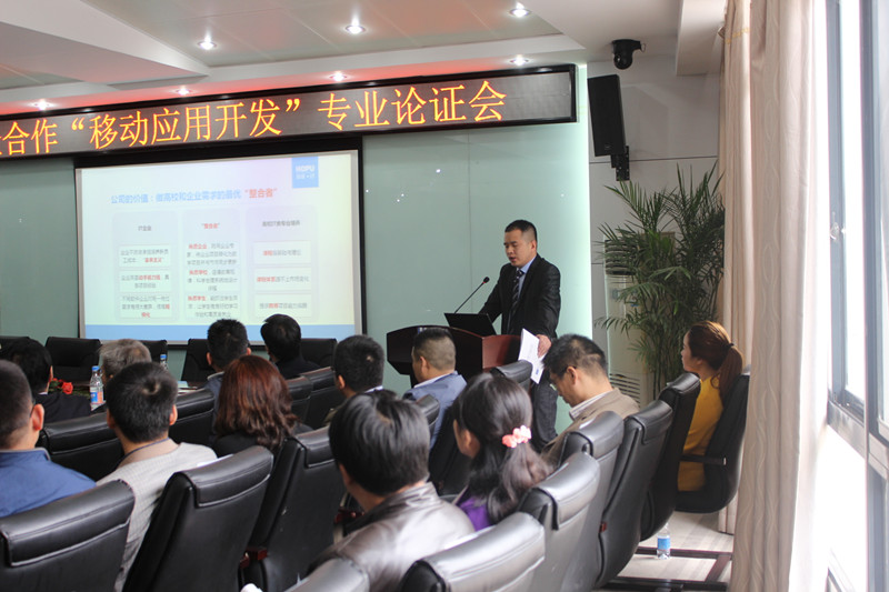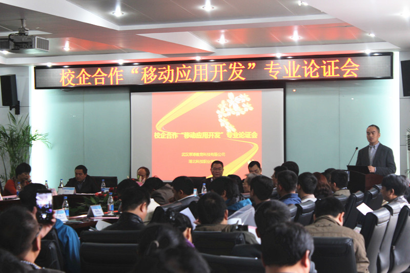 為滿足行業、企業對移動應用開發技術人才的需求,進一步推動產教融合、校企合作,提高人才培養質量,搭建行業、企業、高校的溝通平臺,武漢厚溥教育科技有限公司與湖北科技職業學院于2015年11月07日在光谷軟件園共同舉辦校企合作“移動應用開發”專業論證會。