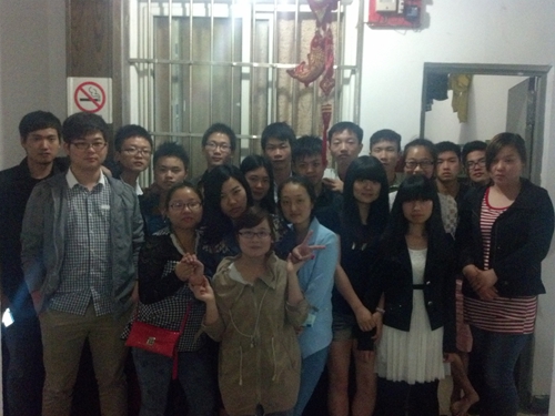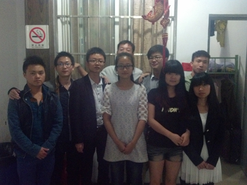 2014年5月11日,景寧老師和已經就業的同學們在學生宿舍留影。